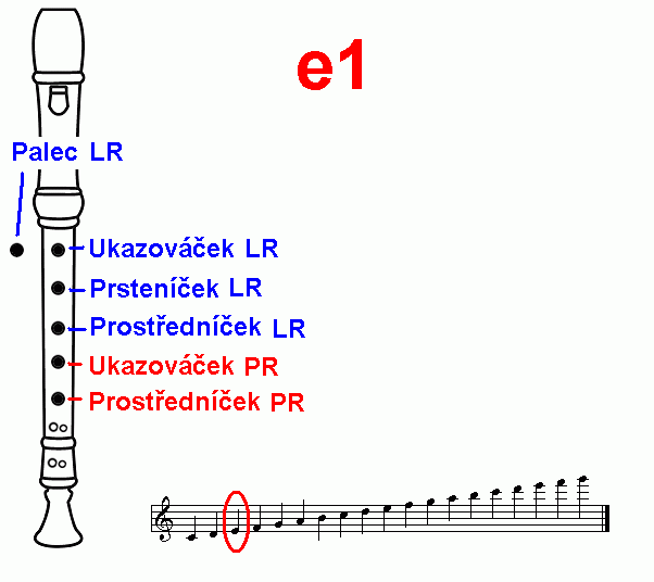 Prstoklad tónu e2: